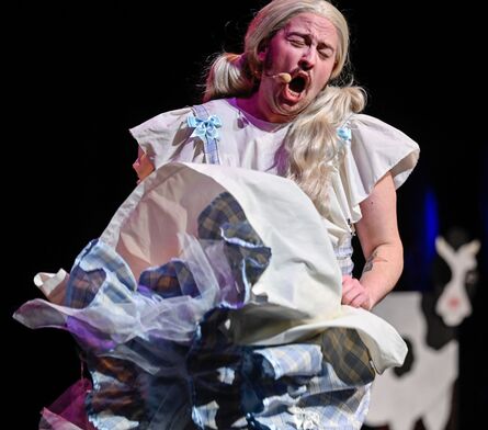 Expect Disney songs as you’ve never heard them before, bad puns, terrible tropes, a damsel in distress, an animal sidekick, villains galore and a hero.