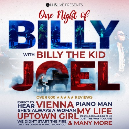 The ultimate celebration concert to one of the most iconicand best-selling artists of all time. In this brand-new touring theatre show Robert Schmuck (Billy The Kid) and his amazing 7 piece band perform breath-taking musical arrangements of multi-million sellingsongssuch as ‘My Life’, ‘Uptown Girl’, ‘River Of Dreams’, ‘Tell Her About It ‘, ‘Still Rock n Roll To Me’, ‘An Innocent Man’, ‘Movin Out’, ‘Just The Way You Are’, ‘We Didn’t Start TheFire’,‘PianoMan’, ‘The Longest Time’and many,many more,it’s anon-stophits show.