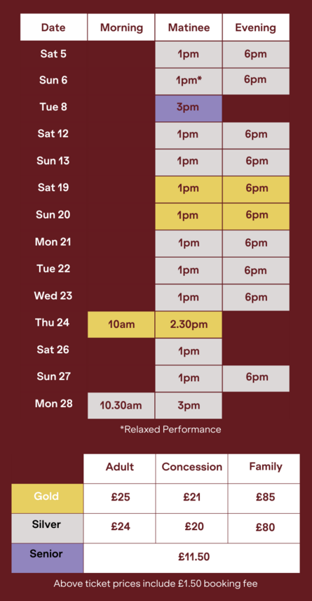Prices include £1.50 Barnsley Civic Support Levy per ticket