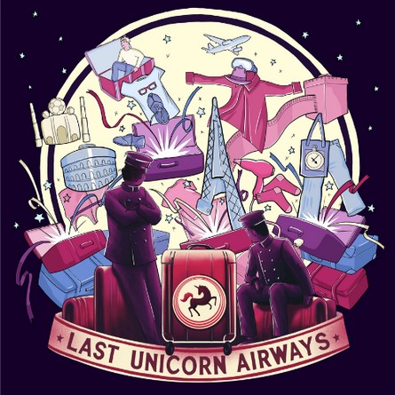 Join two whimsical baggage handlers as they recreate a fantastical round-the-world adventure aboard the final flight of Last Unicorn Airways, opening suitcases brimming with trinkets, fine clothes, alluring smells and exciting tales.